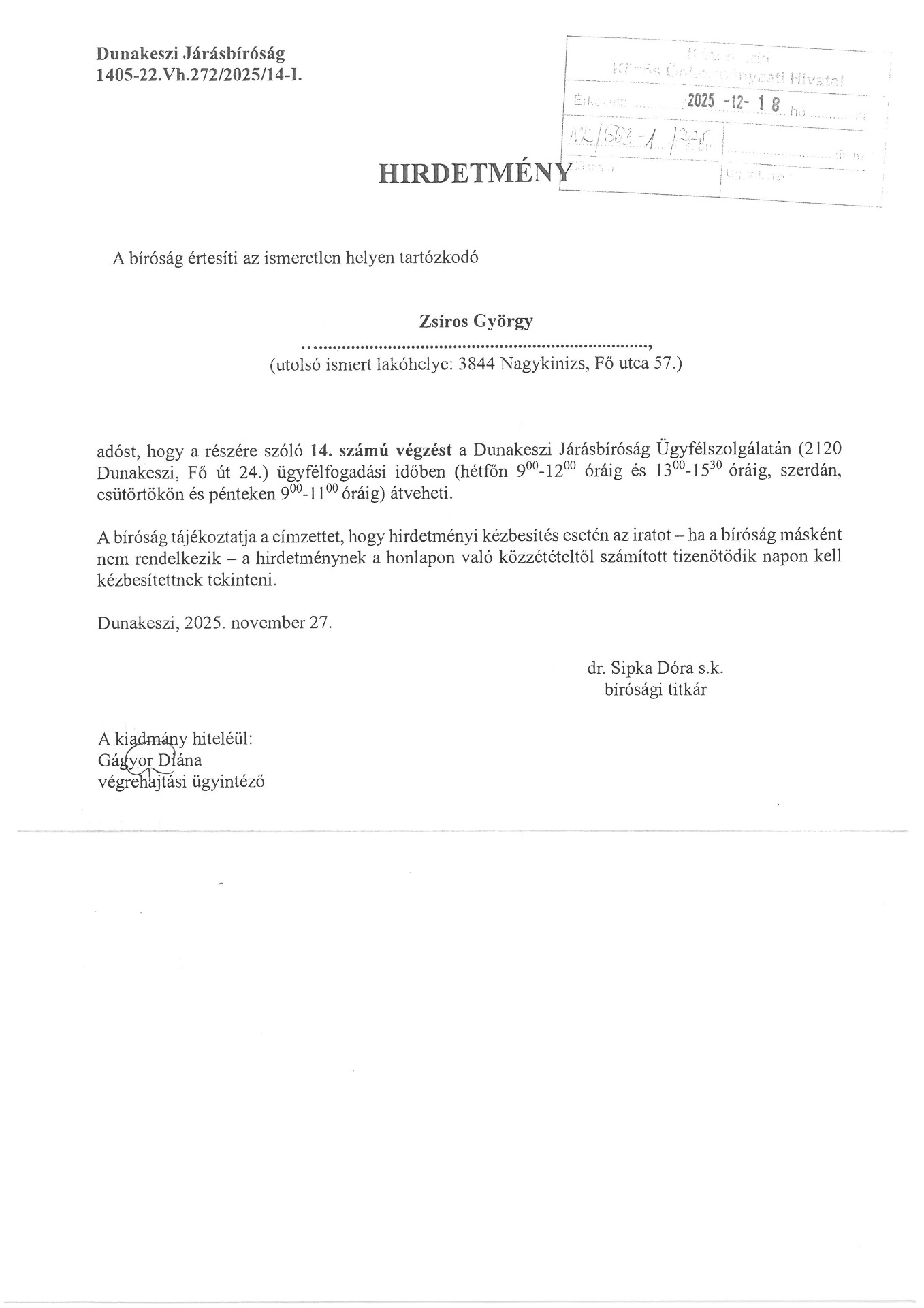 ÉRTESÍTÉS!