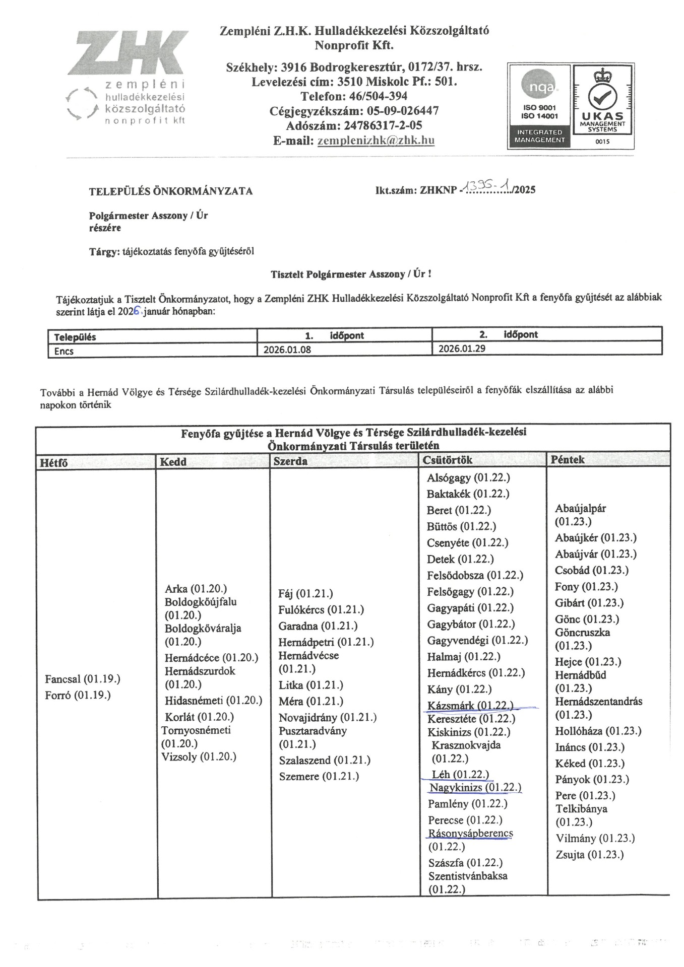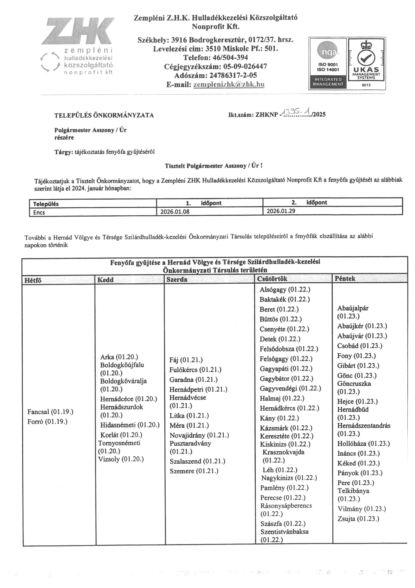 TÁJÉKOZTATÁS A HÁZHOZ MENŐ ZÖLDHULLADÉK GYŰJTÉSRŐL