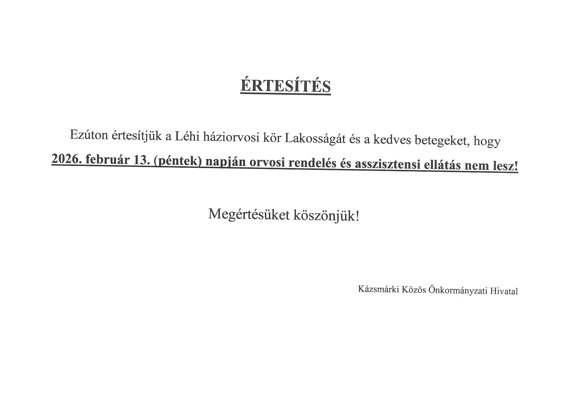 Megértésüket köszönjük!